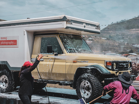 Am nächsten Morgen wollen wir zeitig starten, jedoch werden wir von Polizisten angehalten, angeblich tropft unser Abwassertank. Ehrlich zugegeben, ganz dicht ist er tatsächlich nicht mehr, nur hat es noch nie jemand interessiert. Ist ja auch nur Spülwasser. Die Polizisten lassen jedoch nicht locker und kontrollieren all unsere Papiere mehrmals, das Auto wird inspiziert - immer mit der Hand an der Pistole, irgendwie wirken sie auf uns genauso nervös wie wir. Nach langem Hin und Her brummen sie uns eine Strafe von 1.000 USD (!!!) auf und drohen uns, dass bei Nichtzahlung unser Fahrzeug beschlagnahmt wird. Jetzt sind wir auch mega genervt und Micha macht erstmal Fotos von den Beamten, quasi zur Beweissicherung. Man hört ja ab und an von korrupten Polizisten. Am Ende wissen wir nicht, was zum Umdenken bei den Polizisten geführt hat, aber nachdem wir uns noch 100mal entschuldigt haben, werden wir mit der Auflage, den Tank im nächsten Dorf abzudichten, entlassen.